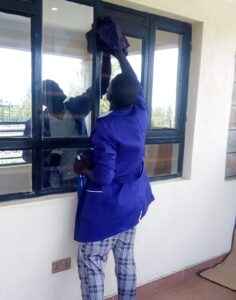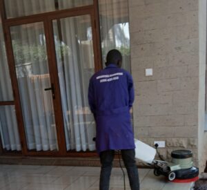 Cleaning windows, glass partitions, and doors